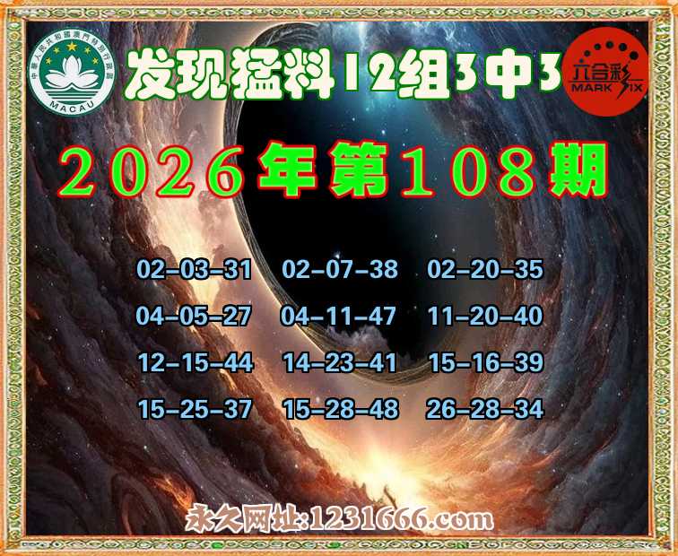 主题: 108期:发现猛料【12组3中3】〓 全年无错